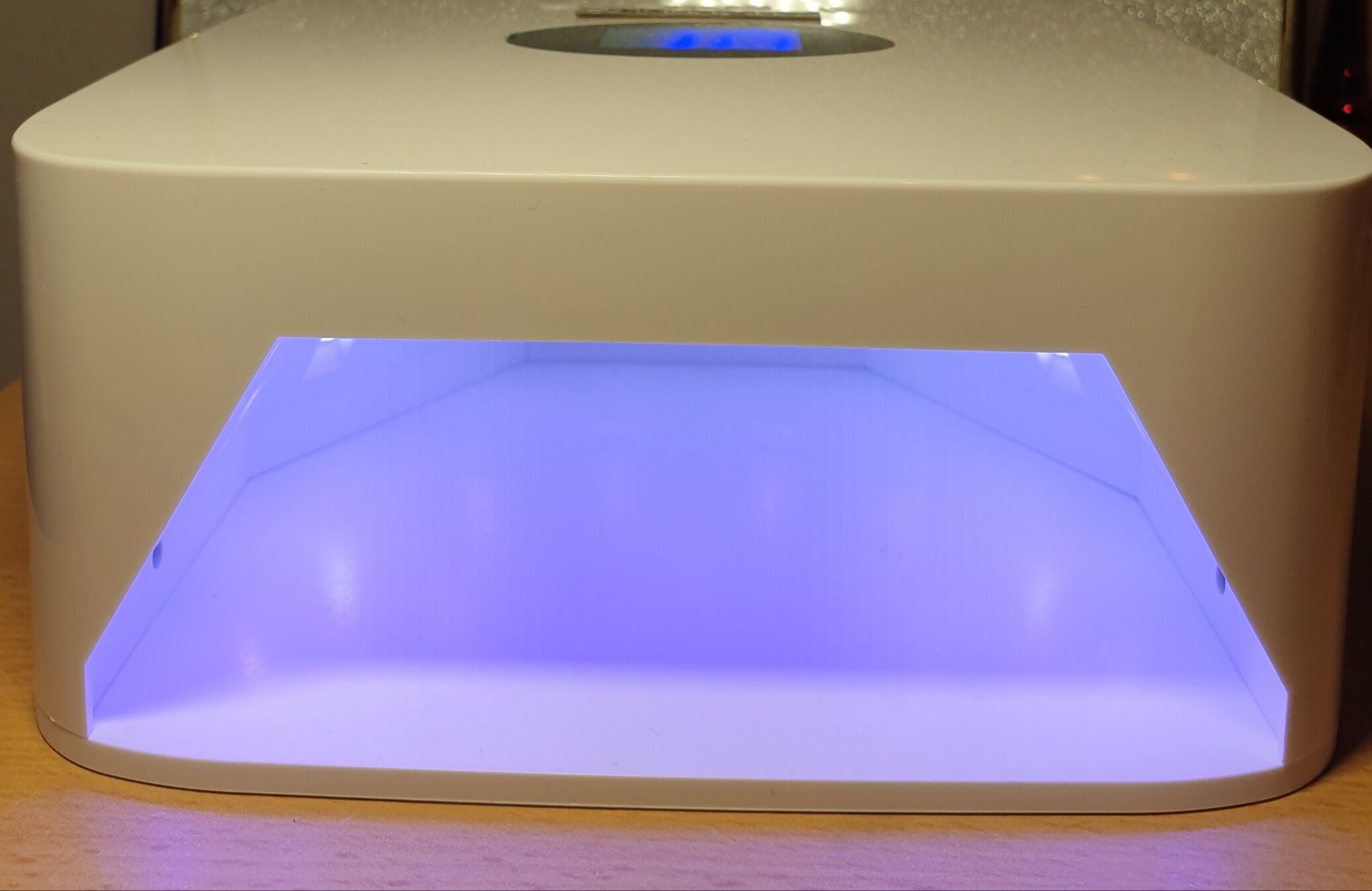 Đèn hơ gel Led 54w. Hơ gel nhanh, có thể sạc,dùng được 2 ngày luôn á. Bên trong lòng dèn rộng, để tay thoải mái, không sợ khách vô tình chạm móng nè.